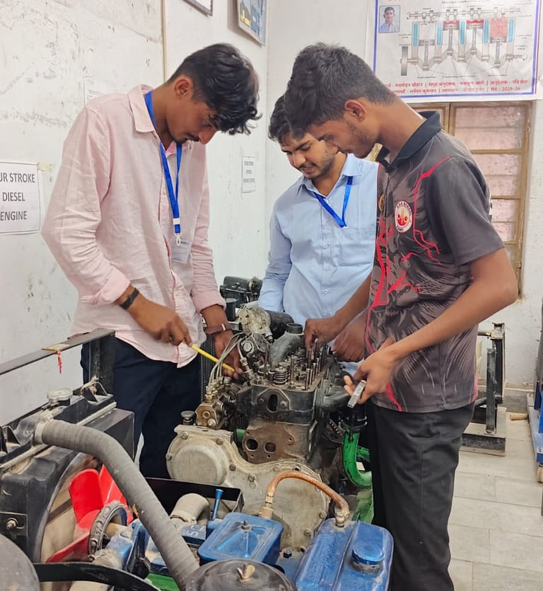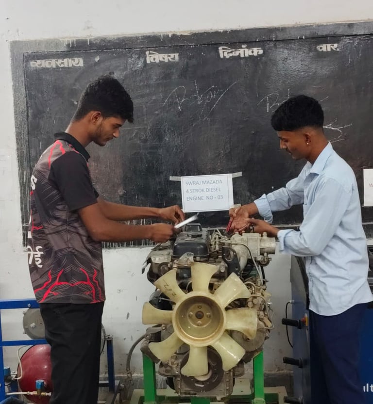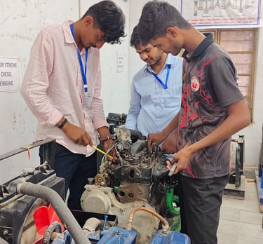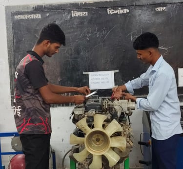 मैकेनिक डीजल व्यवसाय में प्रशिक्षण प्राप्त प्रशिक्षणार्थियों हेतु रोजगार एवं स्वरोजगार के क्षेत्र :- निजी वर्कशॉप लगाकर इंजिन सर्विसिंगव मरम्मत कार्य। 2. डीजाल इंजिन से सम्बन्धित उपकरण जैसे: फ्यूल इंजक्शन पम्मा एवं इंजेक्टर सर्विसिंग एवं मरम्मत तथा स्कूटर, मोटर- साइकिल, मोपेड, श्री व्हीलर का मरम्मत व सर्विसिंग कार्य। ॐ विधुत उपकरण जैसे डायनेमी, एल्टरनेटर, सेल्फ, स्टार्टर, बैटरी की मरम्मत कार्य वाटर पेम्मा, रडिएटर, व ऑयल पम्प की मरम्मत कार्य । 4. सिलेण्डर हेड सर्विसिंग में वॉल तथा वॉल शीट ग्राइंडिंग कार्य।मैकेनिक डीजल व्यवसाय में प्रशिक्षणार्थियों को दी जाने वाली तकनाकी दक्षताः 1 इंजिन को सिद्धान्त तथा कार्य प्रणाली की विस्तृत जानकारी। 2. इंजिन के पुर्जी की जानकारी जैसे:पुर्जे की बनावट, मैटेरियल, कार्य प्रकार, खराबी व उनका निस्तारण तथा रख-रखाव । 3. कूलिंग सिस्टम में प्रयुक्त पुर्जे जैसे रेडिएटर थर्मोस्टट वाल्व, वाटर पम्प, फैज, फैन बल्द, वाटर जैक्ट की जानकारी, रख-रखाद 4. लुब्रिकेशन सिस्टम में प्रयुक्त पुर्नेः आयल परमण, आयल फिल्टर सम्मा व ऑयल बदलना, पुजा की मख्मत तथा रख रखाव । 5. फ्यूल सिस्टम में प्रयुक्त पुर्जे जैसे फ्यूल इंजक्शन, पम्प, फीड पम्प, फ्यूज टेकन, इंजेक्टर, फ्यूल फिल्टर, फ्यूल पाइए की मरागत एवं रख रखाव ।