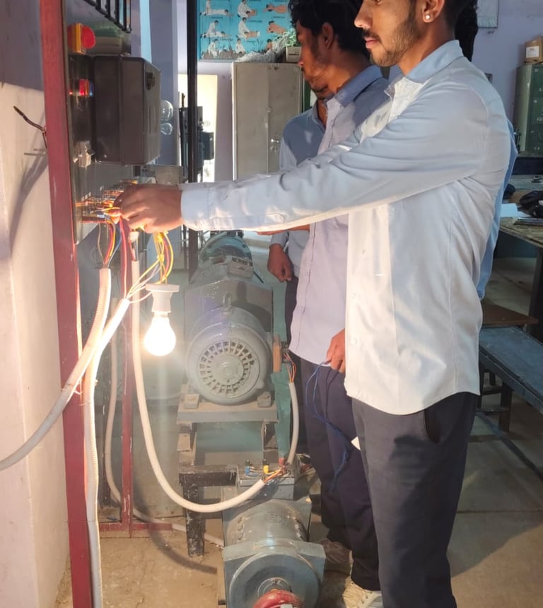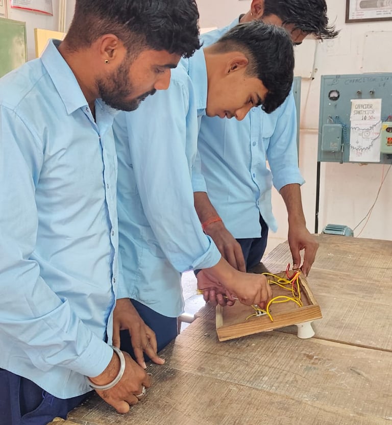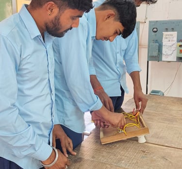 वायरमेन व्यवसाय में प्रशिक्षणार्थियों को दी जाने वाली तकनीकी दक्षताः 1. विद्युत उसके प्रकार, प्रभाव व आवश्यक जानकारी। 2. विद्युत हस्त-औजार प्रयोग, रख रखाव । उ प्रतिरोधी को जोड़ना, मान ज्ञात करना व उसके आवश्यक नियमों की जानकारी। 4. विद्युत जनित्र, उसका कार्य सिद्धान्त, भाग व रिपेरिंग की जानकारी । 5. विद्युत यंत्र प्रकार सिद्धान्तव प्रयोग की जानकारी। 6. विद्युत सहायक सामग्री की जानकारी । 7. विद्युतउपकरण उसकी देखभाल, मरम्मत की जानकारी । 8 विद्युत चालक के बिल) उसके प्रकार प्रयोगव ज्वाईन्ट (आओड़े) लगाने, सोल्ड्रींग करने की जानकारी। वायरमेन व्यवसाय में प्रशिक्षण प्राप्त प्रशिक्षणार्थीयों हेतु रोजगार संस्क्रो जगारखे शत्र 1 वर्तमान में विद्युत वायरिंग करने वाले वायरमेन का कार्य हीन प्रत्येक शीन में है। 2. मकानों / घरी में रोशनी व विभिन्न कार्यकेि लिए प्रयोग में आने वाले विद्युत उपकरण के लिए वायरिंग करके। घरी में विद्युत उपकरणों का प्रयोगबढ़ गया है, तो उनके खराब होने पर रिपेरिंग करके सी स्वरोजगार प्राप्त कर सकता है। 4 वाहनों की वायरिंग, रिवाइण्डिंग का कार्य करके। 5. घोटे विद्युत उपकरणों के पार्टस, जैसे-हिटिंग एलीमेन्ट, प्रेस एलीमेन्ट, यायरिंग लकड़ी बोर्ड व कैपेसिटर इत्यादिबनाकर । १. विद्युत वायरिंग, उसके प्रकार करने का तरीका सहायक सामग्रीकी जानकारी || 6. अलग पार्टस की एंसम्बल कर पूर्ण उपकरण बनाकर । विभिन्न औद्योनिकइकाईयों में जैसे-सिमेन्ट प्लॉट पावर प्लॉट इत्यादि ।