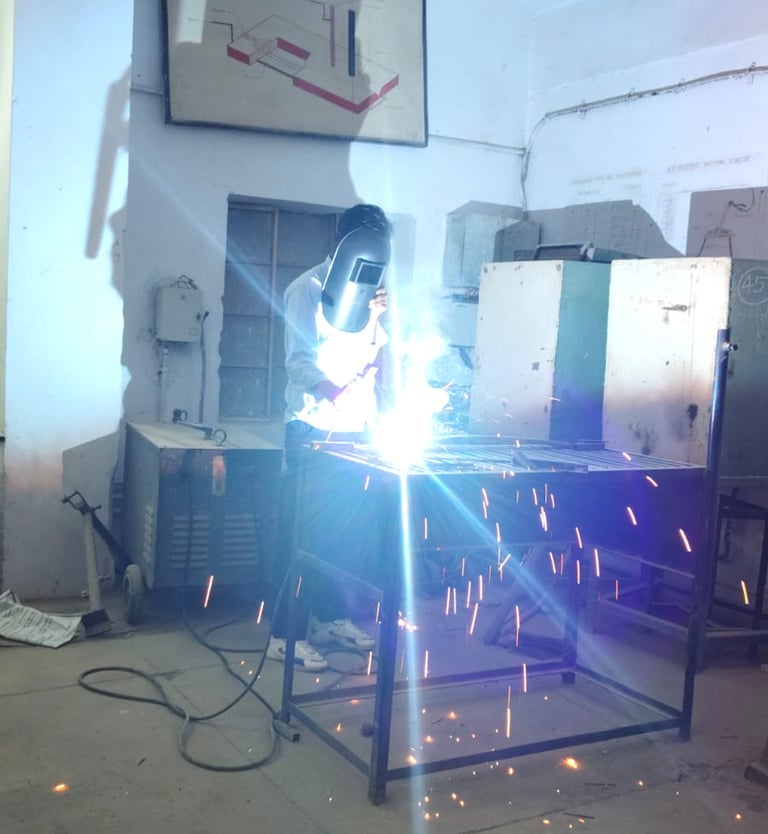 वैल्डरव्यवसाय में प्रशिक्षण प्राप्त प्रशिक्षणार्थियेो हतु नेजगार तथा स्वरोजगारकेशी 1 निर्माण कार्य में भवनों के दरवाजे, खिड़किया, जिला कर्कशॉप रोड़ आदिकरवाना। 2. स्टील फर्नीचर बनाना तथाउसका रिपेयर कार्य करना। उ याहनों की बोडी, चेशिश बनाना तथा रिपेयरिंग तर्क करना। 4. हस्तशिल्प छोटि बड़े आईटमों को आर्कव गैस वेल्डिंग द्वारा बनाना। 5. आर्क तथा गैरा कटिंग का कार्य करना। दबॉयलर तथा गैस सिलेण्डर द्वारा वेल्डिंग का कार्य करना। राजकीय एवं सार्वजनिक उपकरणों में जैसे-विद्युत मण्डल, सार्वजनिक निर्माण विभाग, परिवहन निगम, रेल्वे वर्कशप, डिफल्स डेयरी इत्यादि विभागों से वेल्डिंगका कार्य किया जाता है। त्र औद्योगिक कायों में वैल्डिंग कार्य किया जाता है। कैडरव्यवसाय में प्रशिक्षणार्थियों को दी जानेवाली तकनीकी दक्षता 2 आर्क वेल्डिंग, गैस वेल्डिंग पर हाई प्रेशर तथा सो प्रेशर प्लान्ट) फैरस सेटल नोन फैरस मेटल इनके अलोय, इनके गुण लाभ उपयोग आदि के बारे में जानकारी देता। फैरस मैटल और नगीन फैलस सेठल की अर्कि तथा जैस कटिंगका कार्य करवाना। 4 धातुओं को जोड़ने के विभिन्न विधियों जैसे-सोन्डिरिंग ट्रेजिन वेल्डिंग 5 गैस तथा आर्किडग द्वारा विभिन्न प्रकार केकेन्ड जोड तैयार करना। इवेडिंग द्वारा बनाये गये ओडों के दोष की जारी देता व इनका निरक्षण तथा परिक्षण करना। 8. विभिन्न पाईपरट्रक्चर की वेन्टिम मरतार्य करना। दिष टूल्स चलाना।